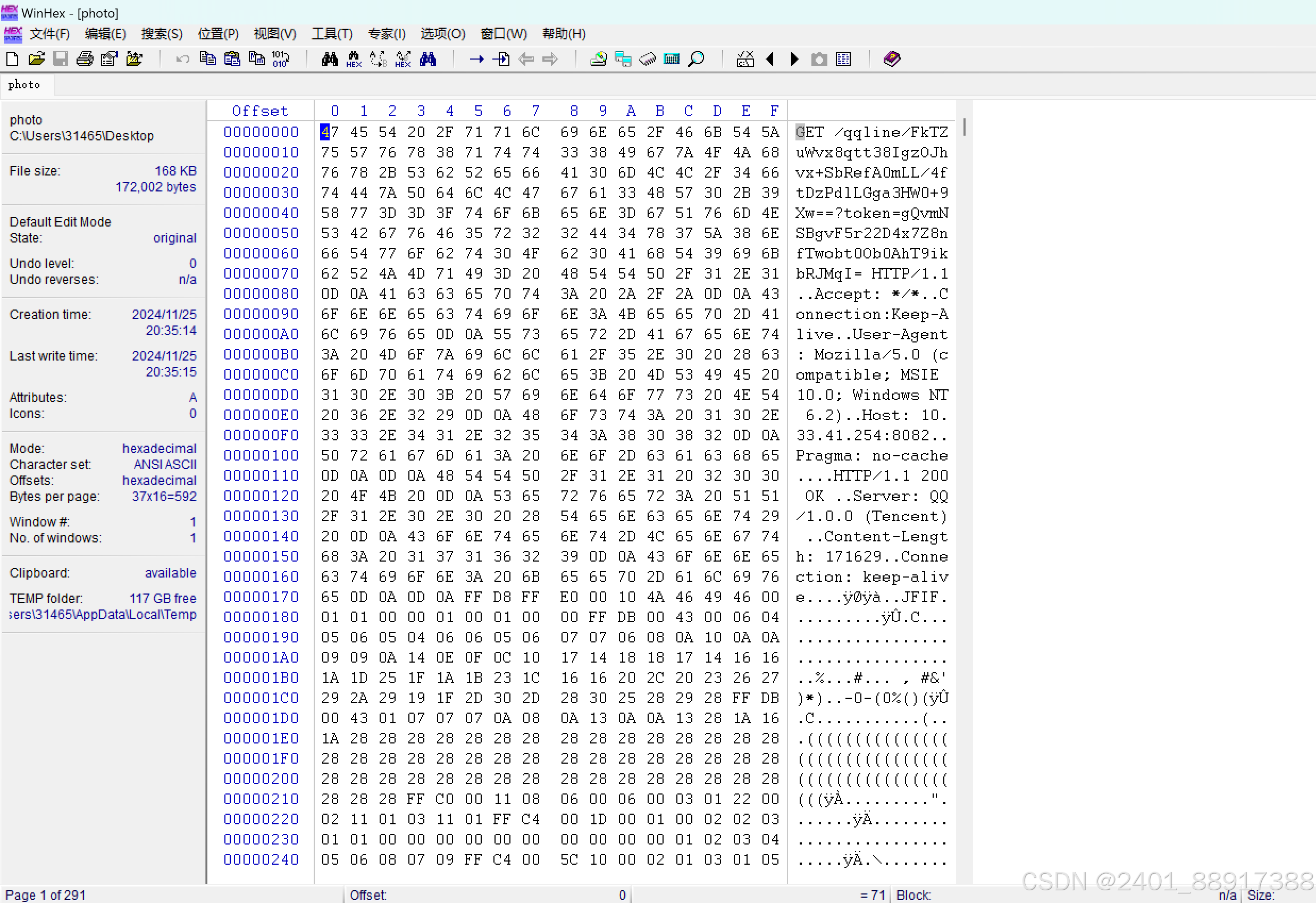 16进制的加密数据,如图。并把原始数据保存至桌面。