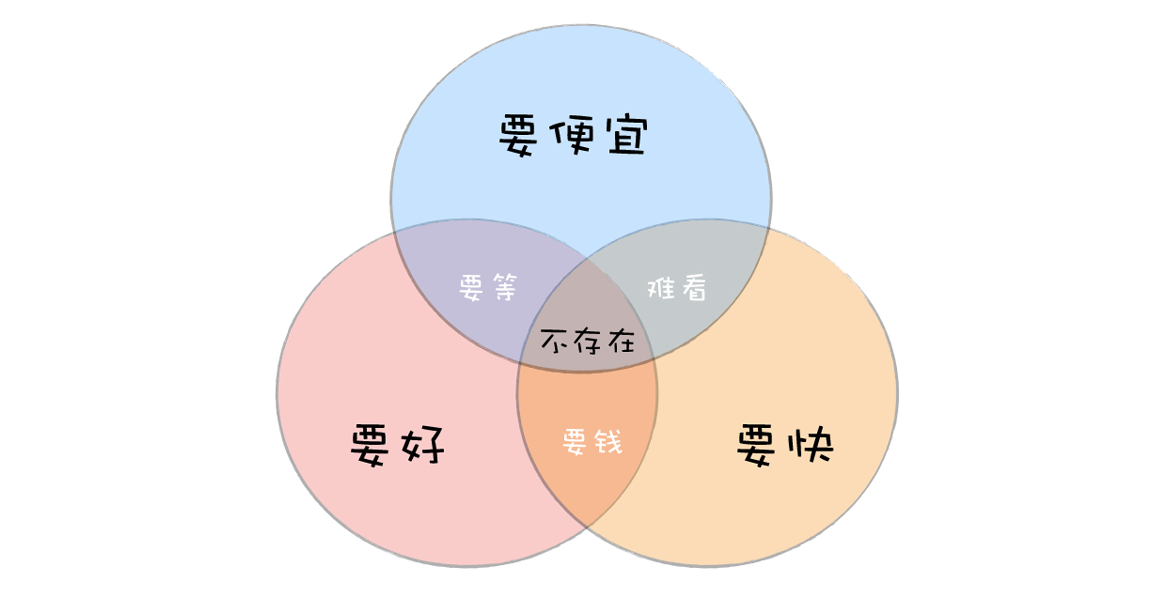 首先得明白一个最浅显的道理:想要“多、快、好、省”都占着,这是不存在的,你只能选两样。想要便宜还想要质量好,那就得等;想要快还想要质量好,那就得多花钱;要想便宜做的又快,那就得接受质量差!
