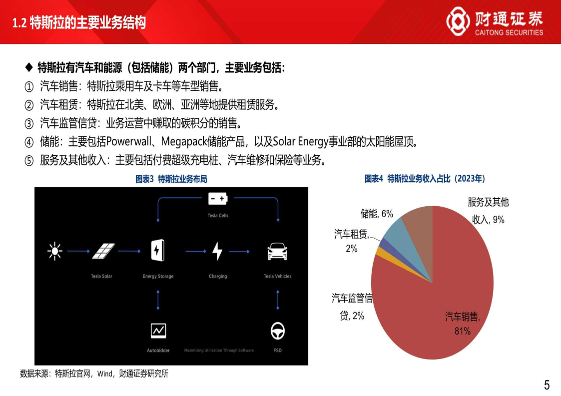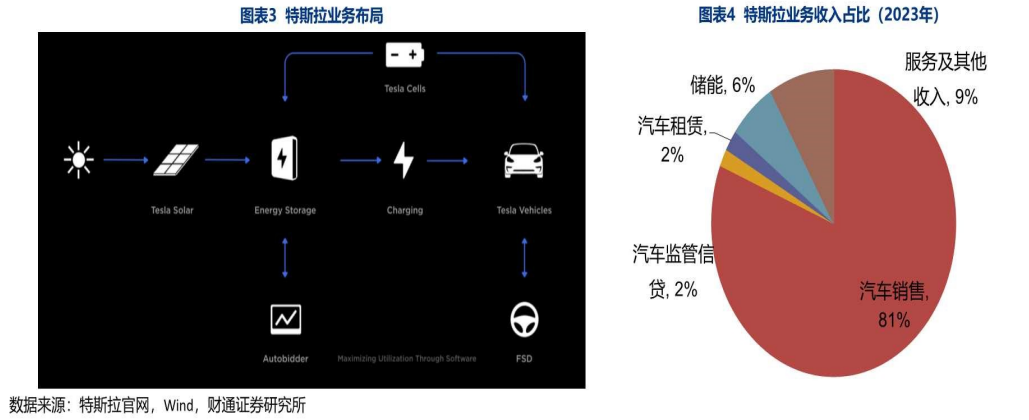 - 储能:主要包括Powerwal、Megapack储能产品,以及SolarEnergy事业部的太阳能屋顶服务及其他收入:主要包括付费超级充电桩、汽车维修和保险等业务。