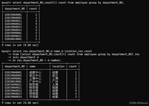 | 9 | D2019060011 | 财务部 | 成都 | D2019060001 |
