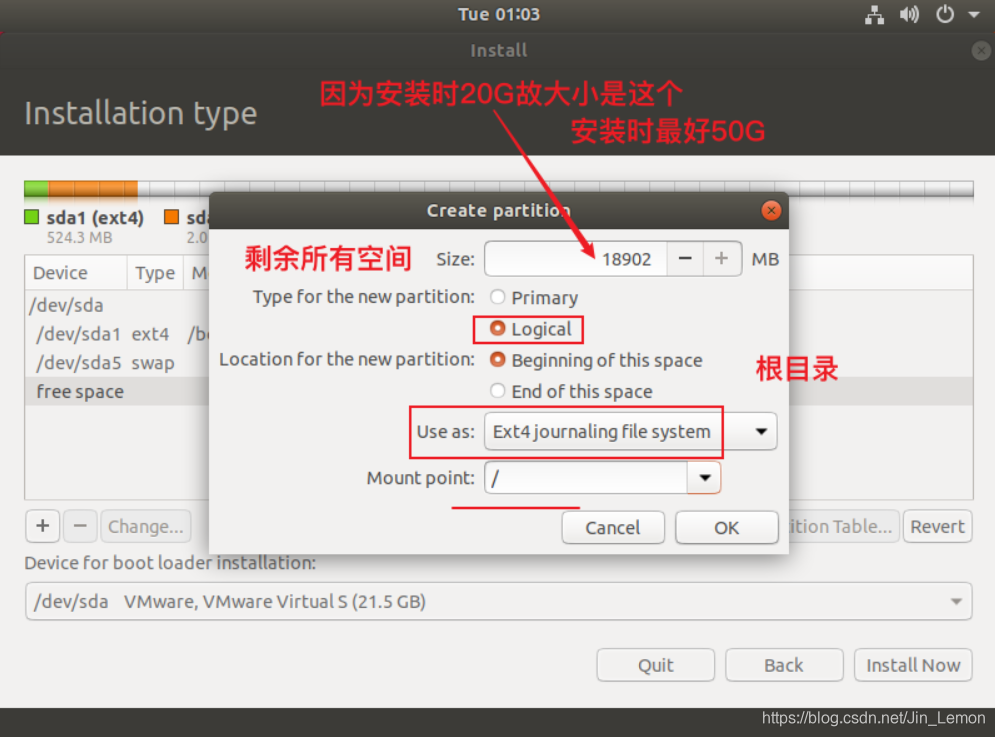 - VMware安装虚拟机时最好设置50G以上,后续文件和快照较多。