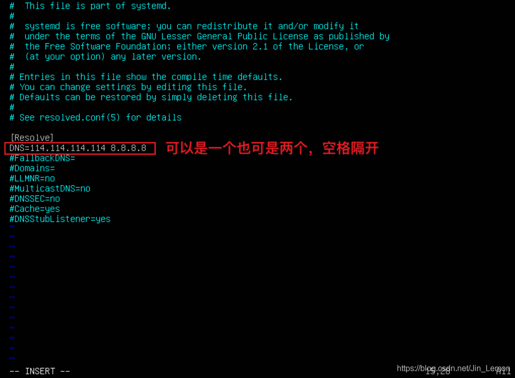 vi /etc/systemd/resolved.conf - 打开该文件找到