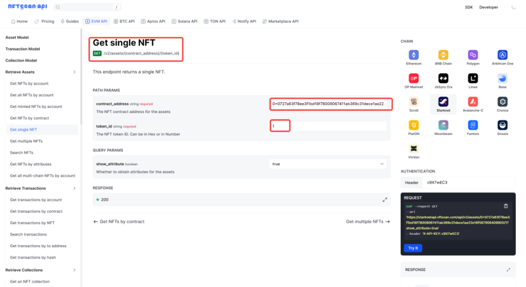 Assets API:"Assets"是 NFT 中最关键的数据字段,用于唯一标识和描述数字资产。开发者可以通过提取 Starknet 区块链上 NFT 的"Assets"数据来获取全面的了解,并构建相关应用。"Assets"对象提供了数字资产的唯一标识以及其整个生命周期的数据,为开发者理解和应用 NFT 提供了基础。