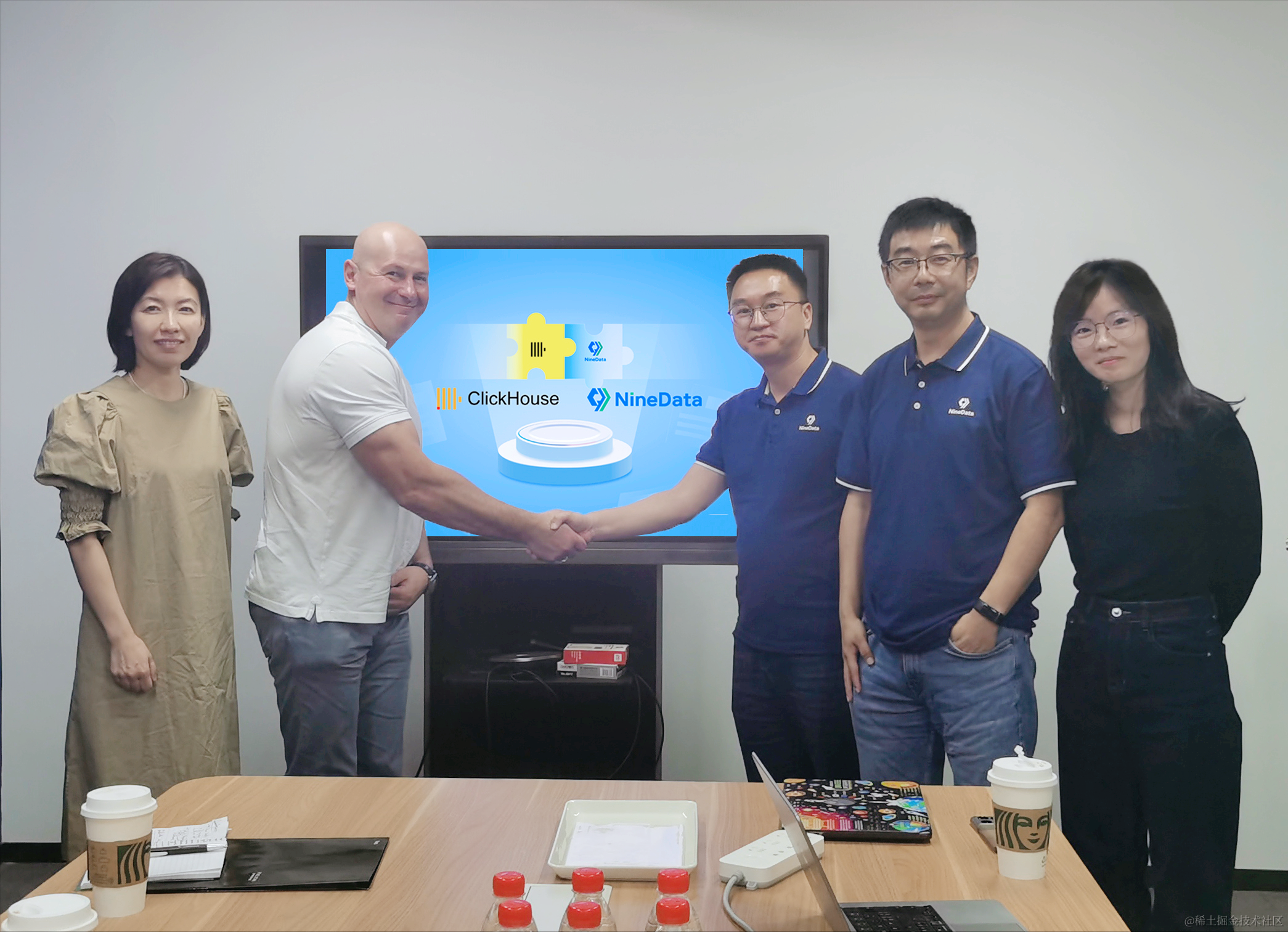 ClickHouse联合创始人Yury与玖章算术叶正盛会面,宣布深化合作,NineData将提供数据复制和SQL开发支持,助力ClickHouse用户更便捷地使用。双方计划在中国社区加强协作,推动数据价值挖掘和企业业务发展。