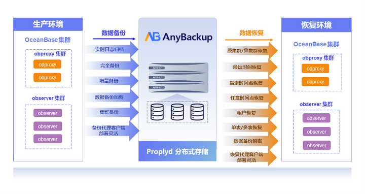 爱数 AnyBackup Famliy 8 是多云战略下集数据备份、副本数据管理、数据治理、数据归档、数据搜索于一体的统一数据管理平台。此次完成兼容性互认证,意味着 AnyBackup 系统支持将 OceanBase 的 Oracle 租户和 MySQL 租户添加为数据源;支持将 OceanBase 数据库备份到指定目的地;支持对 OceanBase 的数据进行完全备份、日志备份和增量备份;AnyBackup 也支持将备份数据恢复到OceanBase 数据库中,并保证恢复数据的一致性。
