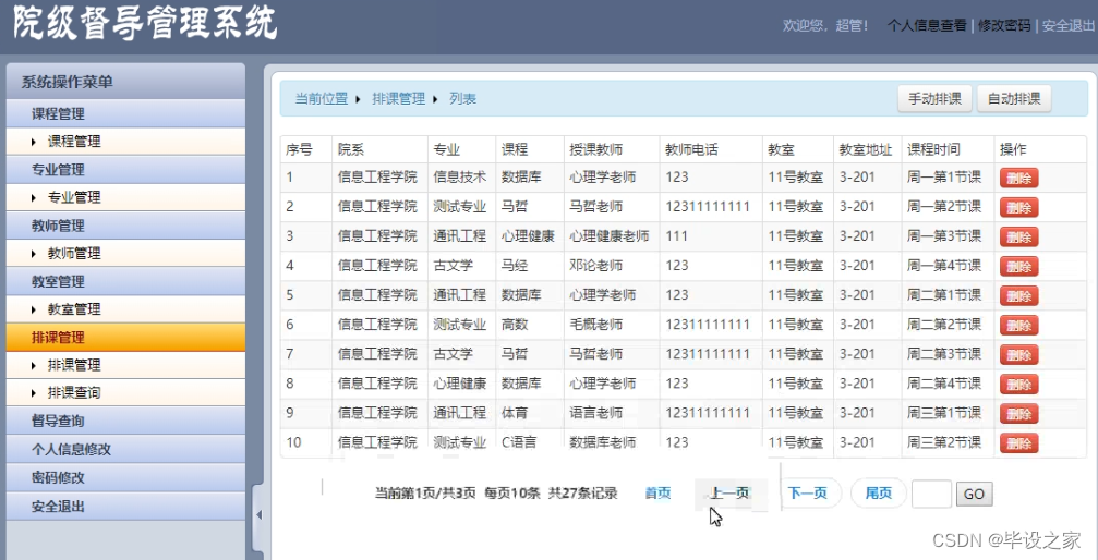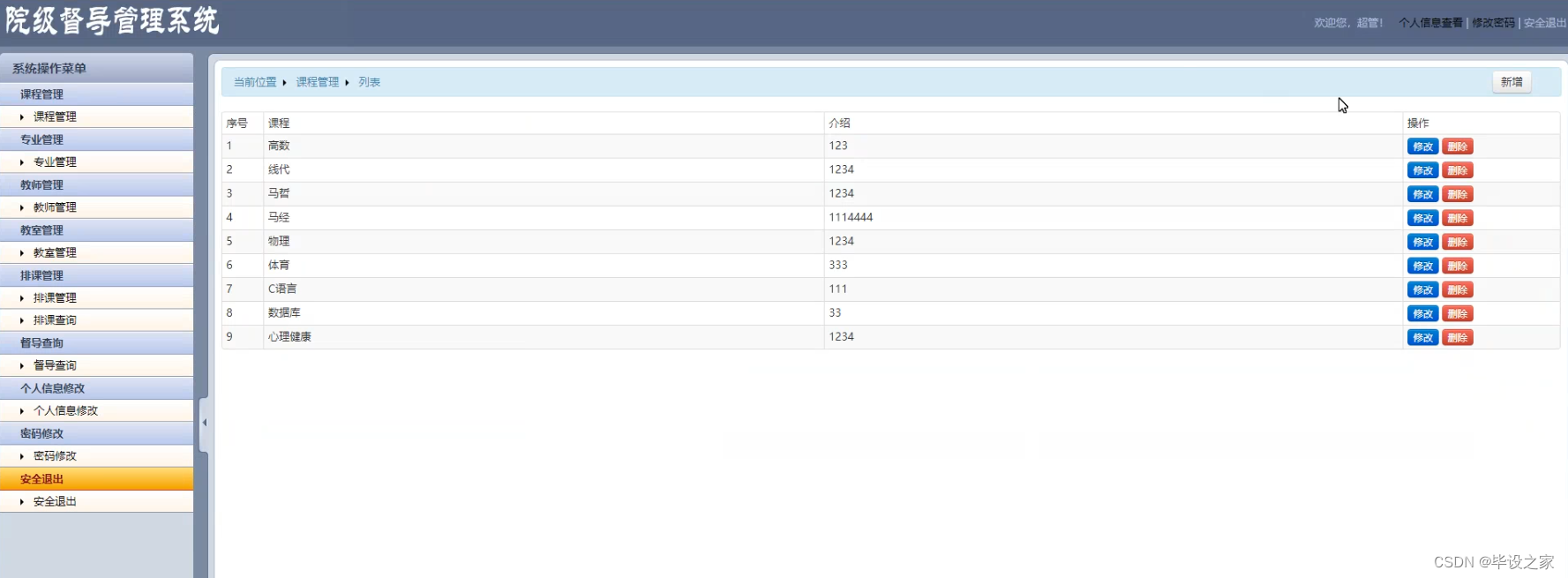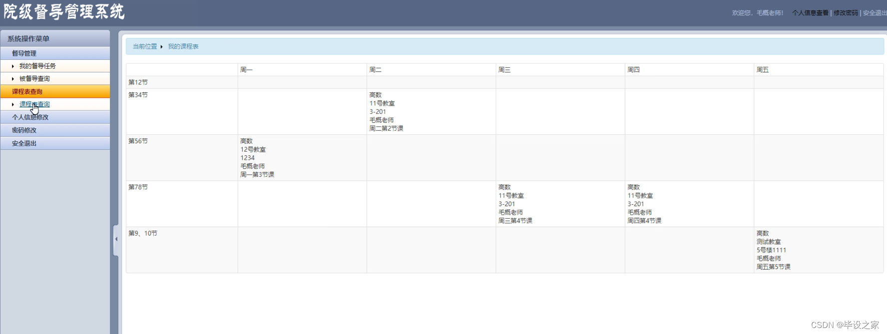 督导人员登录系统可以查看授课计划、调停课信息、录入督导评价信息等;