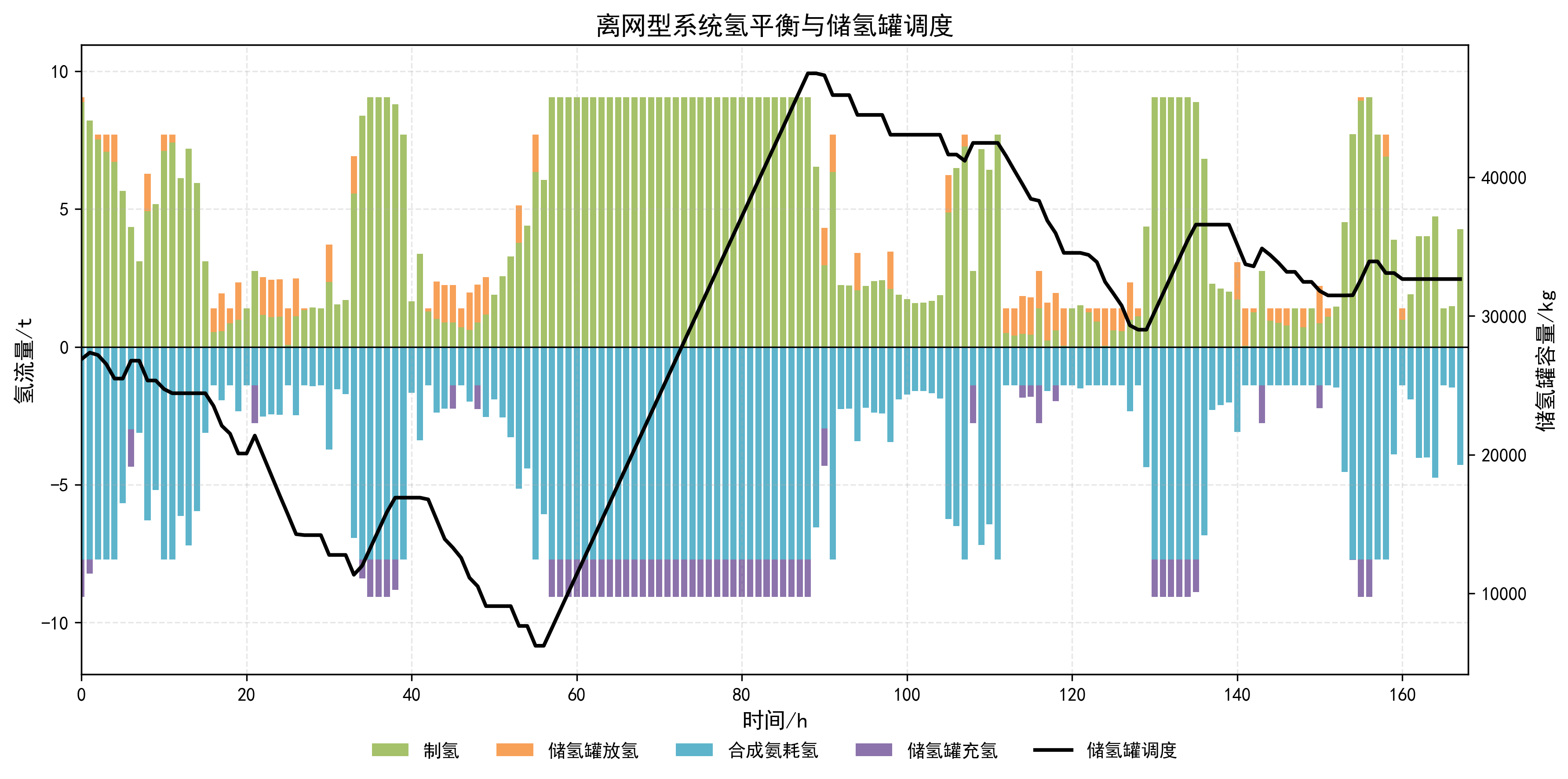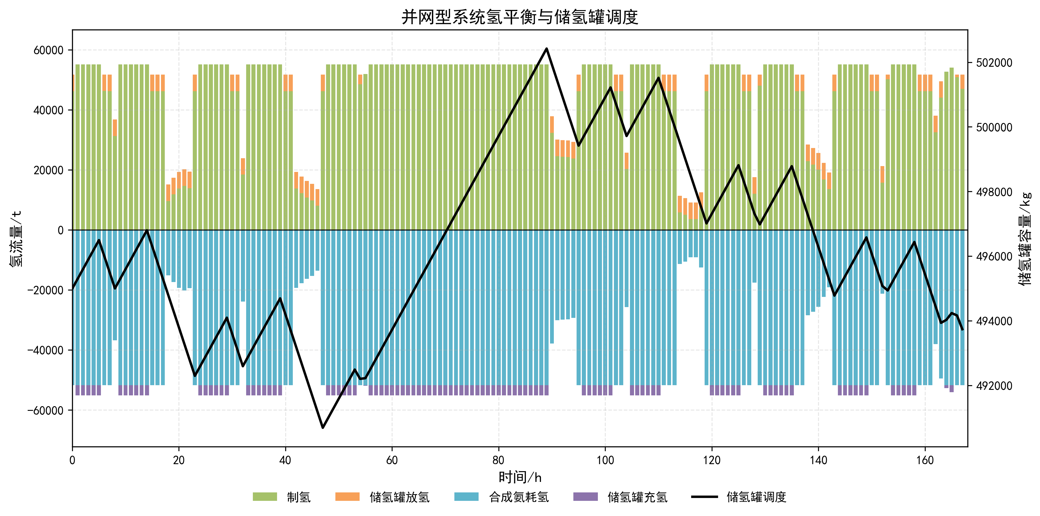 print('第2步:生成电力平衡和氢平衡图(图2-5)')