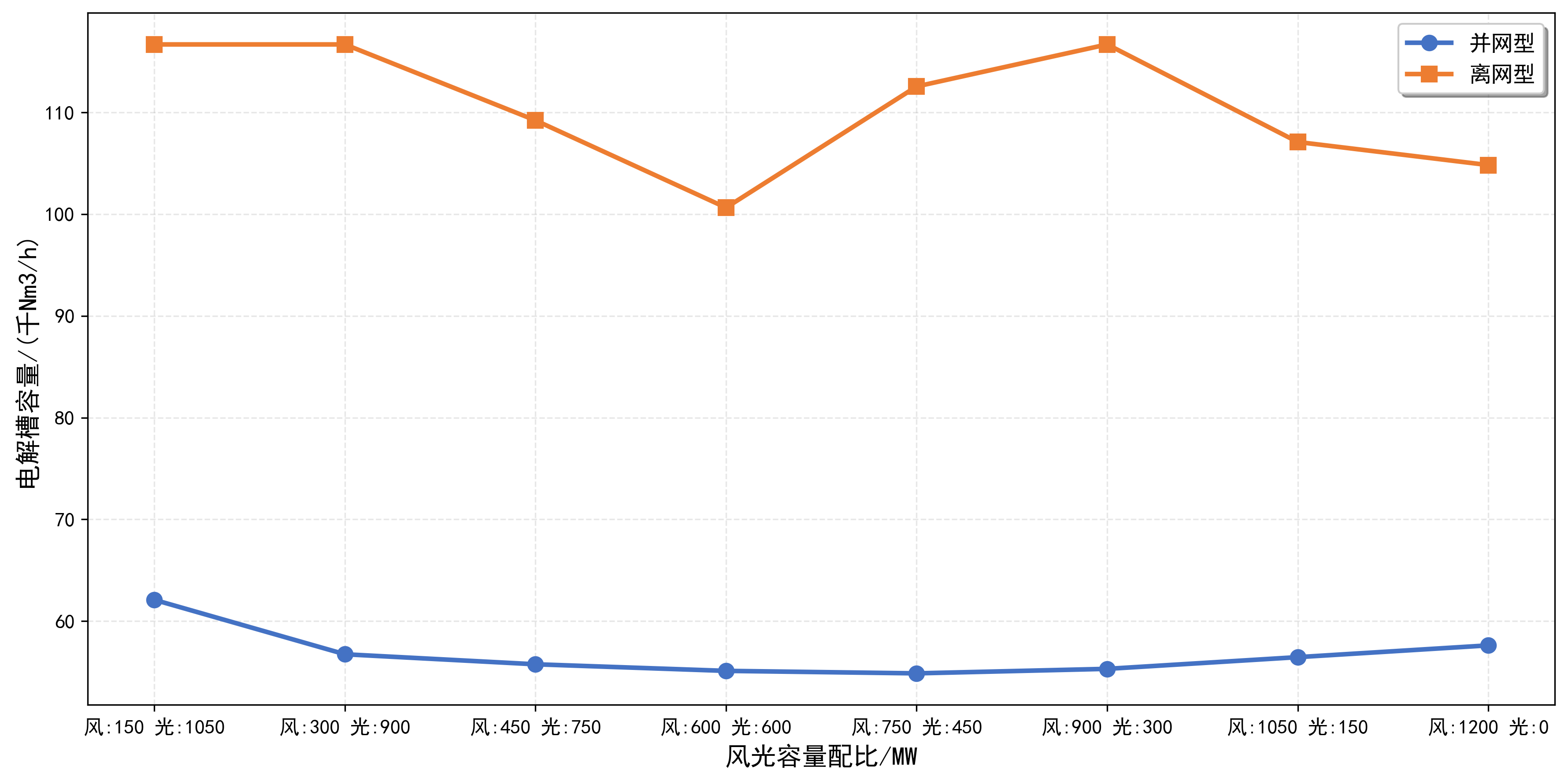 plt.savefig(os.path.join(figures_dir, '图6_风光配比对电解槽容量影响.png'), dpi=300, bbox_inches='tight')