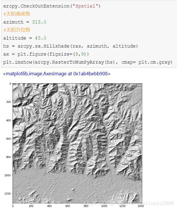 hs = arcpy.sa.Hillshade(ras, azimuth, altitude)