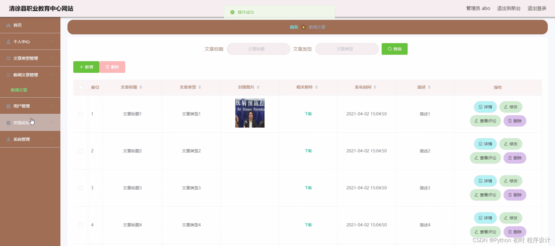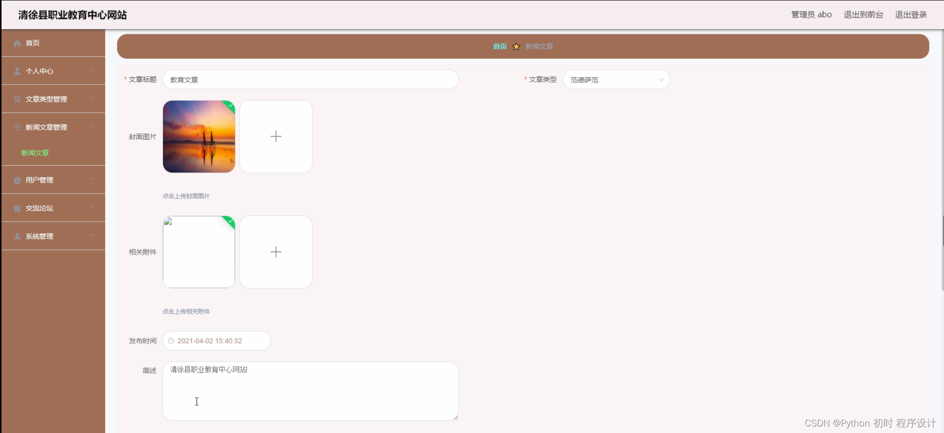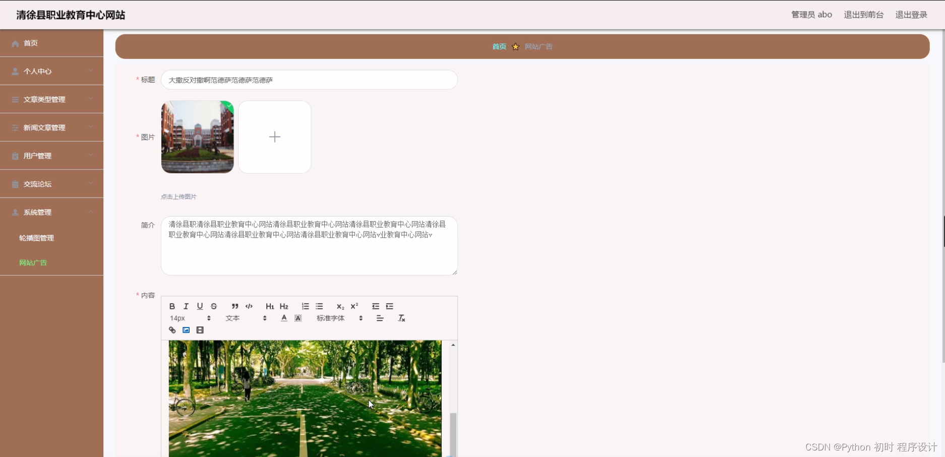 选题背景: 清徐县职业教育中心作为一所专注于职业教育的学校,致力于培养高素质、适应社会需求的职业人才。随着信息技术的快速发展和互联网的普及,建立一个专属的网站已经成为现代学校的必然选择。通过建设清徐县职业教育中心网站,可以为学校提供一个全新的宣传平台,提升学校的知名度和影响力,同时也为师生提供了更加便捷的信息获取和交流渠道。