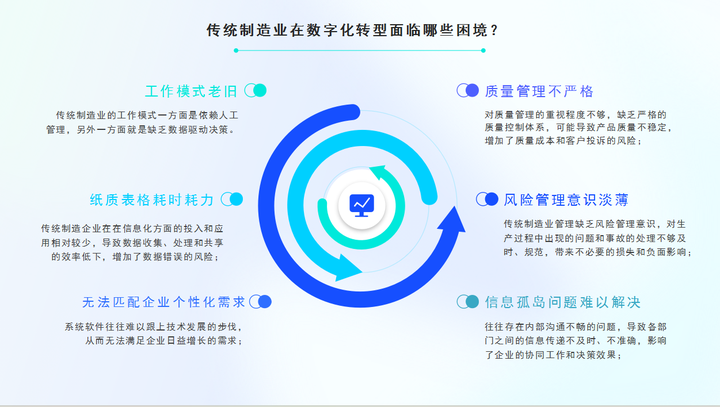 由于传统制造企业的组织结构、业务流程、产品种类以及价值链的复杂性,为推动数字化转型带来了诸多挑战和困难。