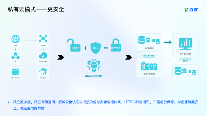 对于大部分中小企业来说,所需成本也是需要考虑的重点,百数的服务商模式,采购价格以及所有性能增配的价格都是明示的,不会在后期对服务商强制收取额外的费用。在保证性能的同时,帮助中小型企业获取更具性价比的解决方案。