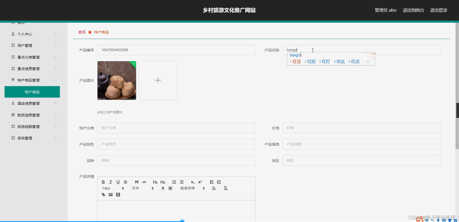 - 特产商品模块:展示和推广乡村的特色商品和手工艺品,提供在线购买功能。