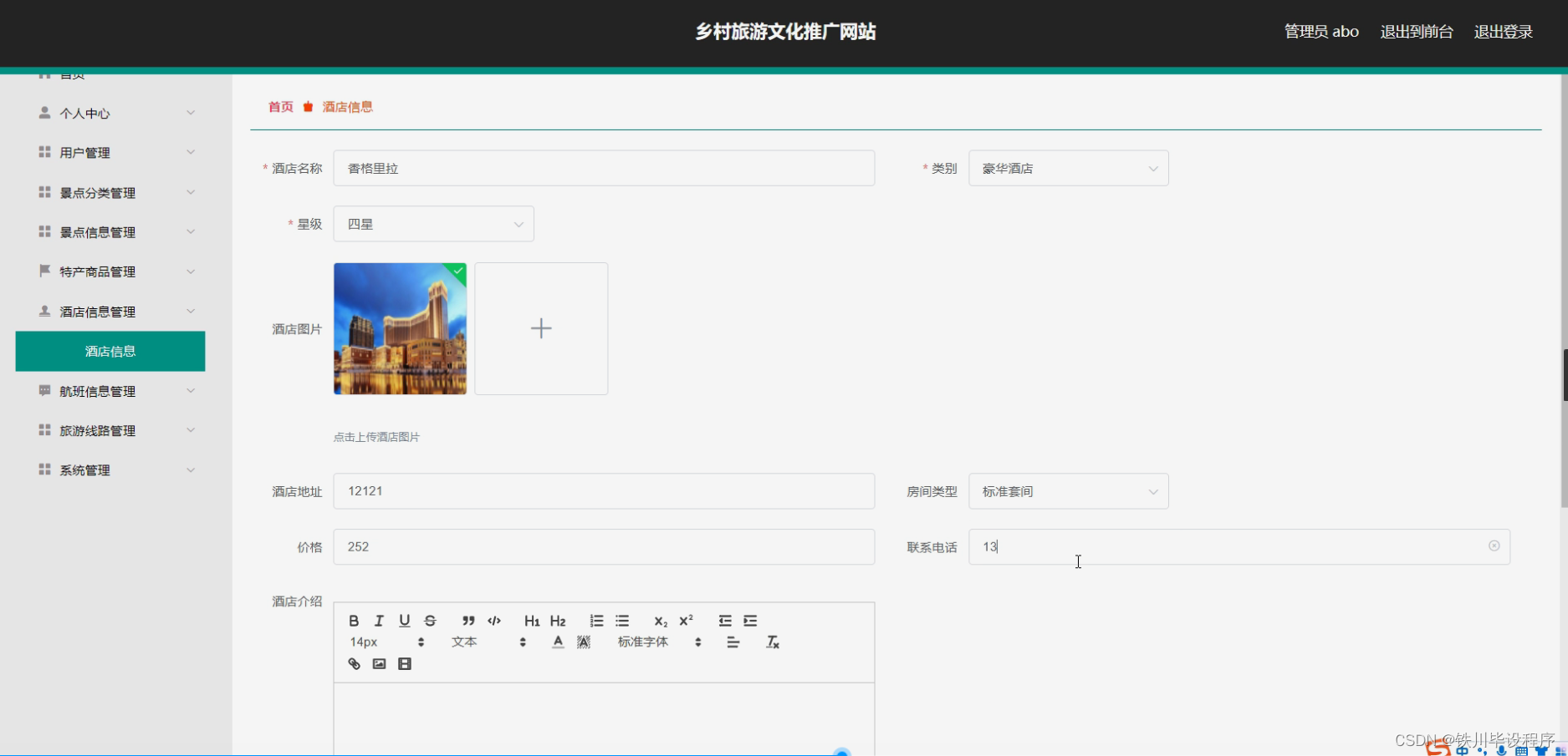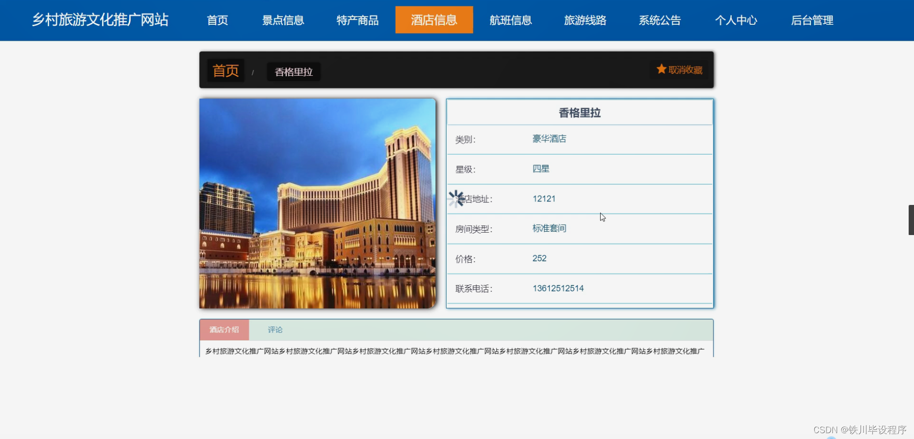 - 酒店信息模块:发布当地酒店或民宿的信息,提供预订服务。