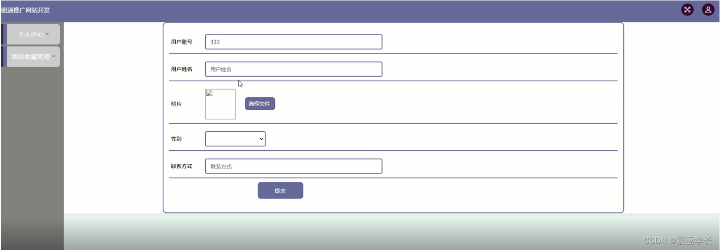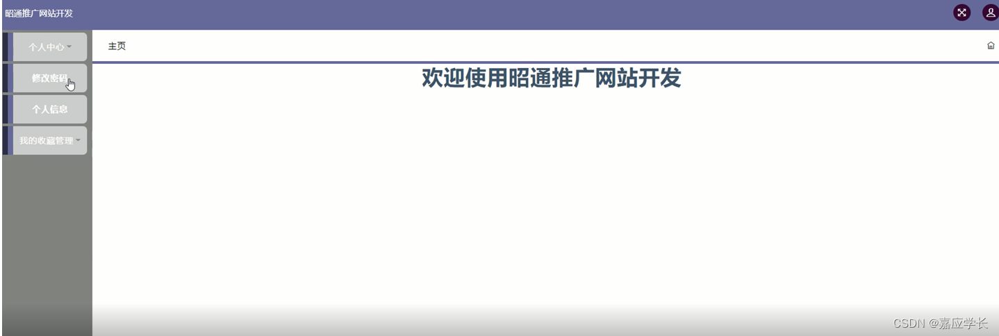 点击后台管理成功跳转到昭通推广网站开发可以查看个人中心、我的收藏管理等内容,如图5-11所示。