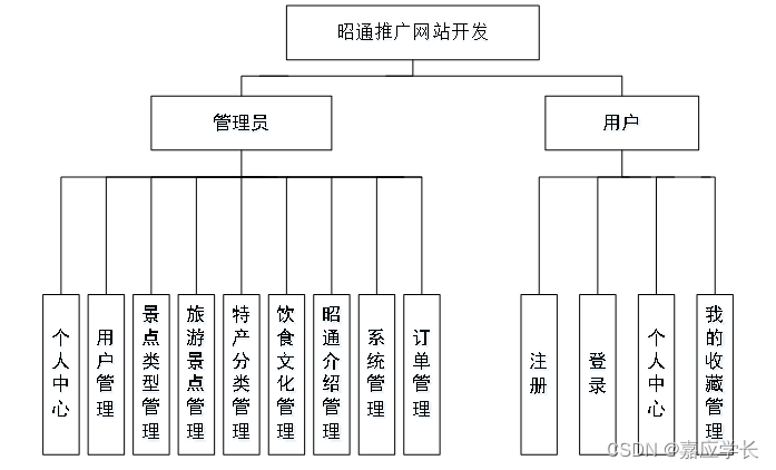 为了更好的去理清本系统整体思路,对该系统以结构图的形式表达出来,设计实现该昭通推广网站开发的功能结构图如下所示: