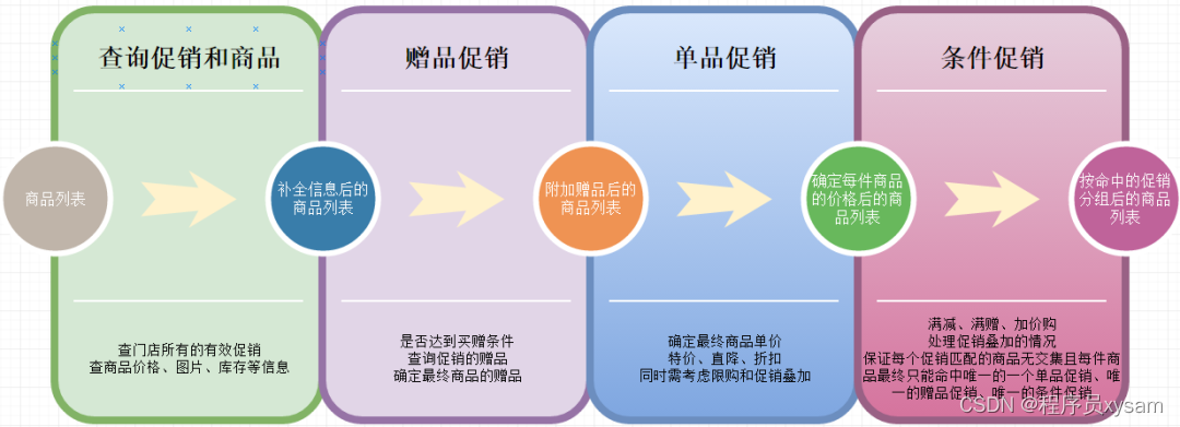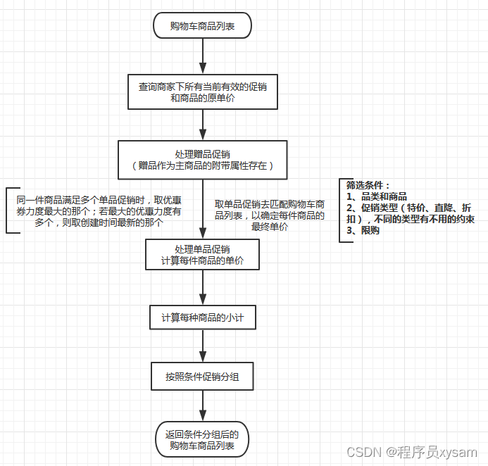 程序走到这里,我们已经完成了单品促销的处理,接下来处理条件促销。在决定商品应该最终应用哪个条件促销时,我们的原则是这样的: