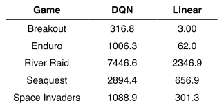 将 DQN 与强化学习文献中性能最佳的方法进行了比较,还报告了专业人类游戏测试者在受控条件下和统一随机选择行动的策略下的得分