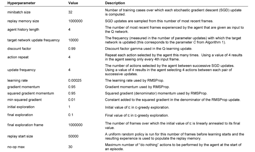 参数在其他所有游戏中均保持不变。所有超参数的值和说明见下表。