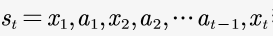 :动作和观察序列,每个序列都是一个不同的状态,因此,我们只需使用完整序列st作为t时间的状态表示