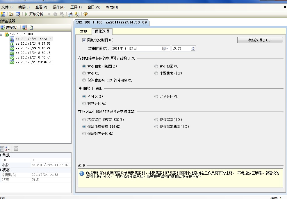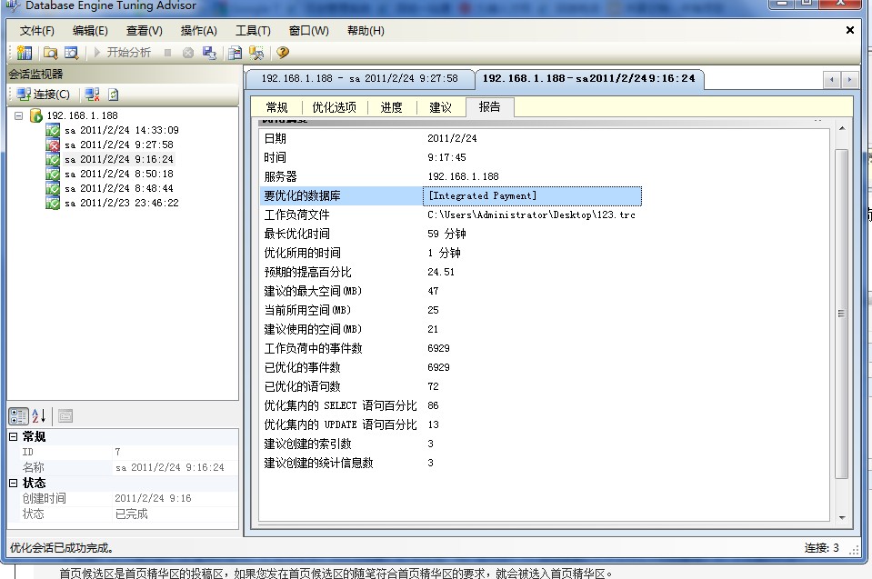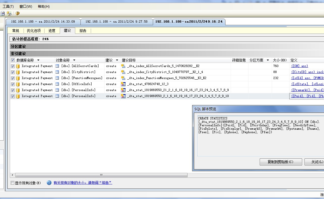 在这里还给出了你的哪些表,需要优化,应该怎么建立索引和视图才能更有效的提高性能,更好玩的是连需要优化的Sql语句都给生成好了, 我们直接复制执行就要可以了。