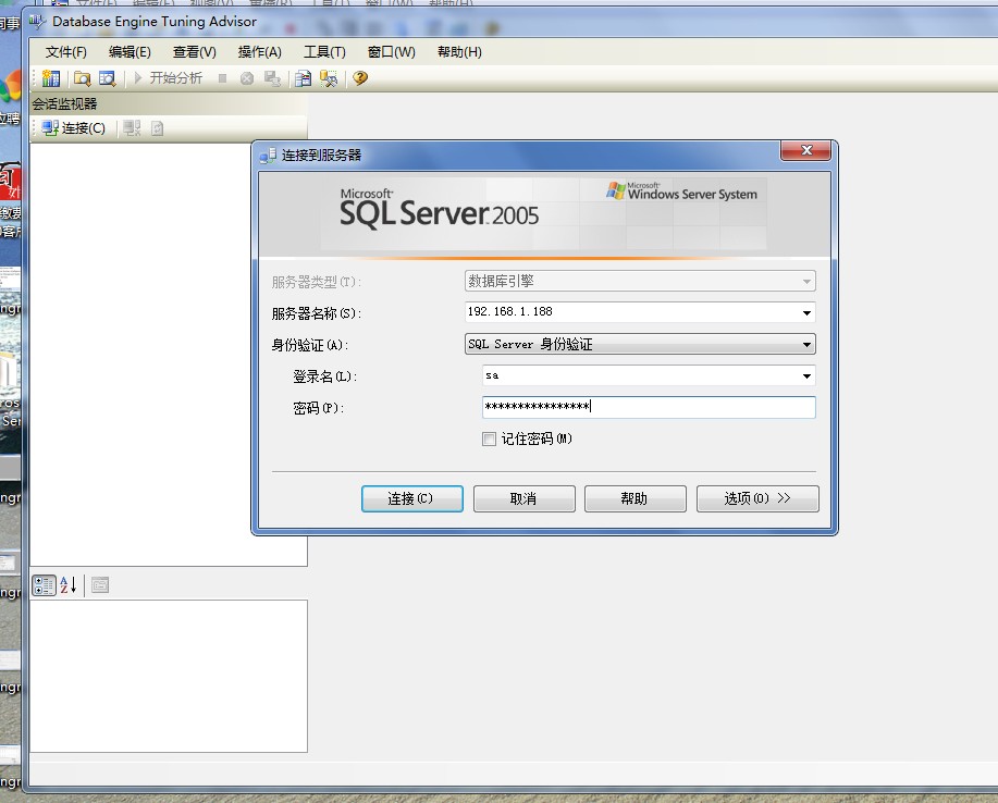 假如我们把文件保存为123.trc 现在我们来打开数据库引擎优化顾问 我们单击开始--程序--Microsoft SQL Server 2005--性能工具--数据库引擎优化顾问 如下图