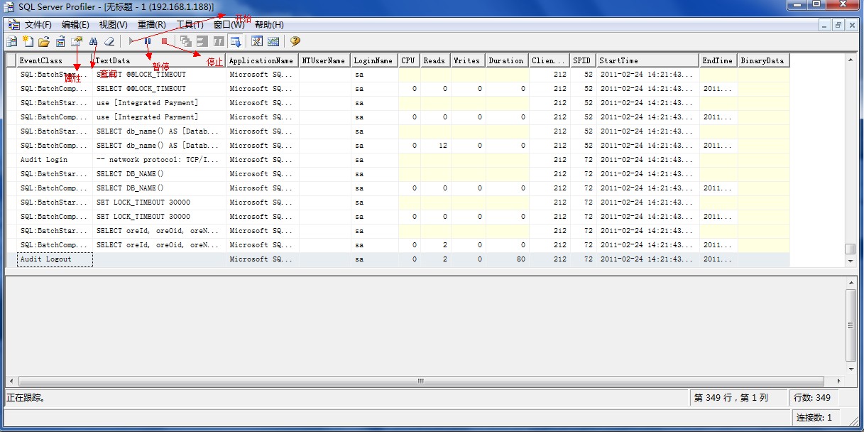 说到Sql的【性能工具】真是强大,SQL Server Profiler的中文意思是SQL Server事件探查,这个到底是做什么用的呢?我们都知道探查的意思大多是和监视有关,其实这个SQL Server Profiler就是一个Sql的监视工具,可以具体到每一行Sql语句,每一次操作,和每一次的连接。感觉这个工具的作用还是很大的,给大家分享一下,对于新手了解Sql语句的写法和提高语句的性能方法有很大的帮助。