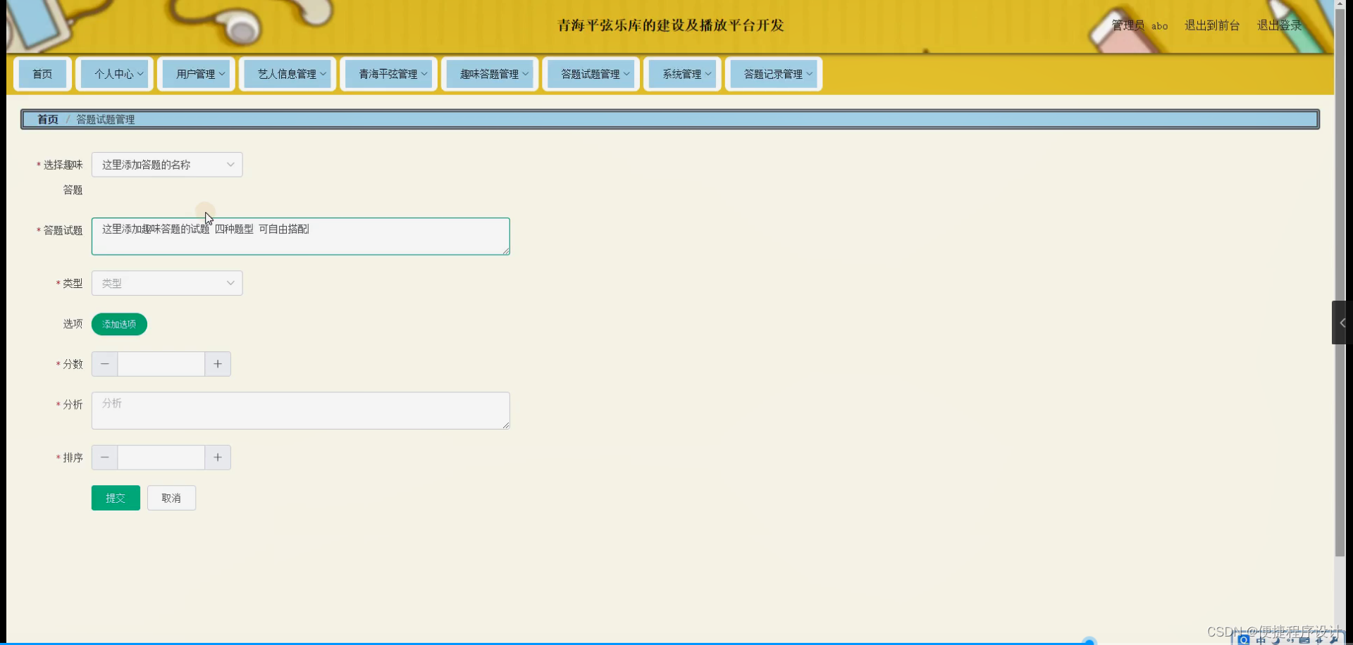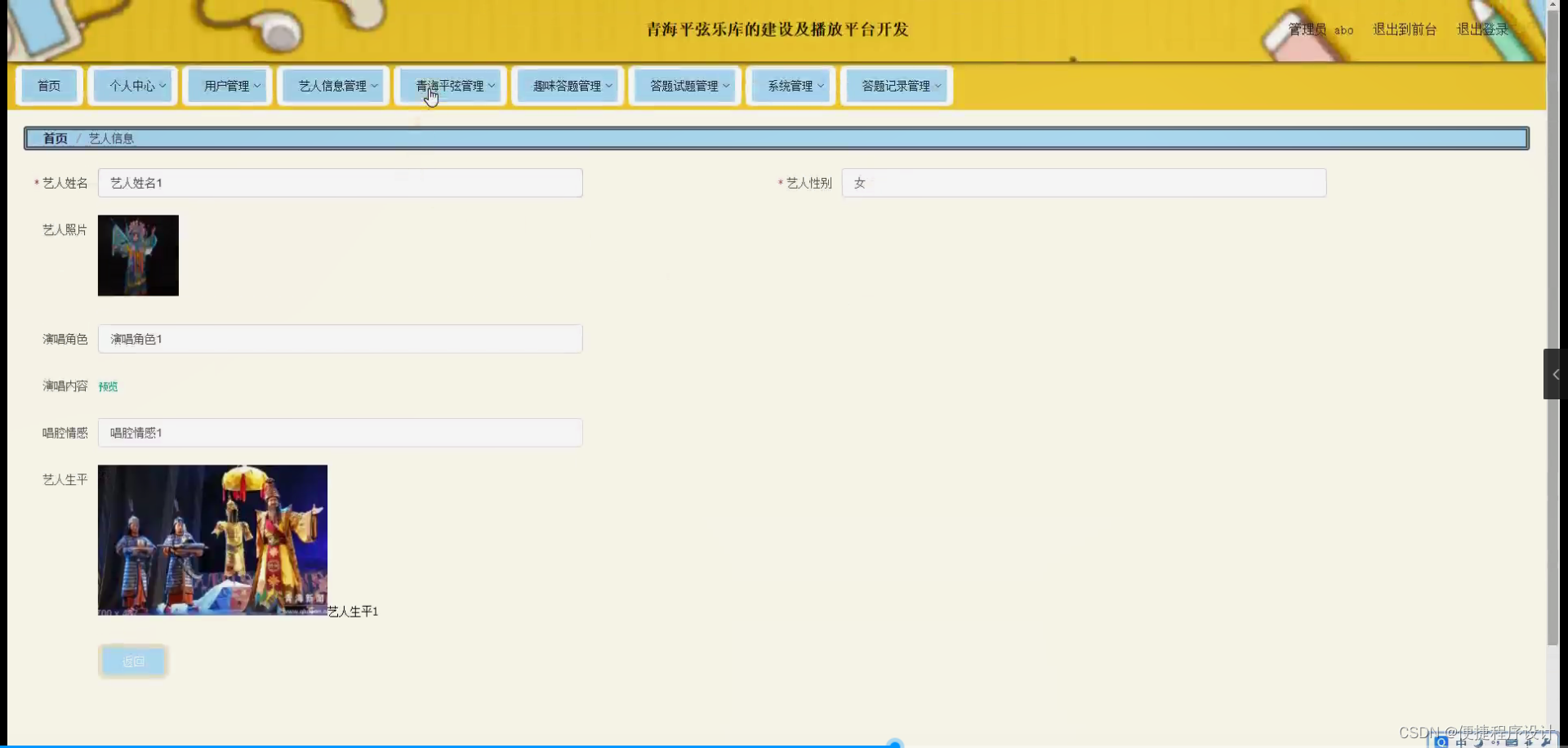 - 播放平台开发:开发一个用户友好的播放平台,允许用户在线欣赏青海平弦曲目,了解艺人信息和乐器信息。