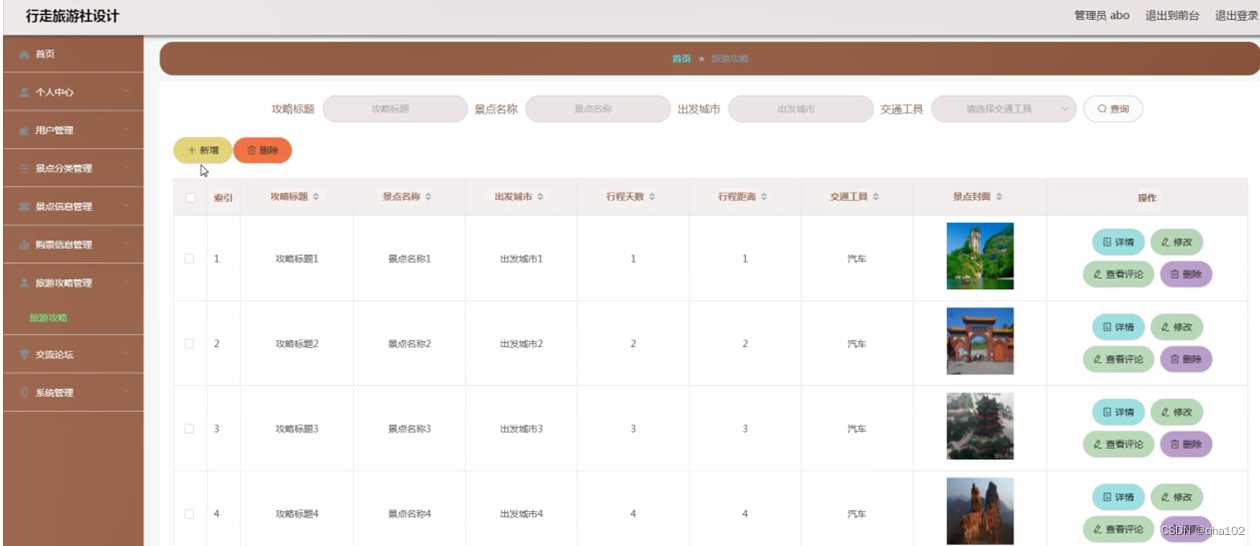 图4-12旅游攻略管理界面图