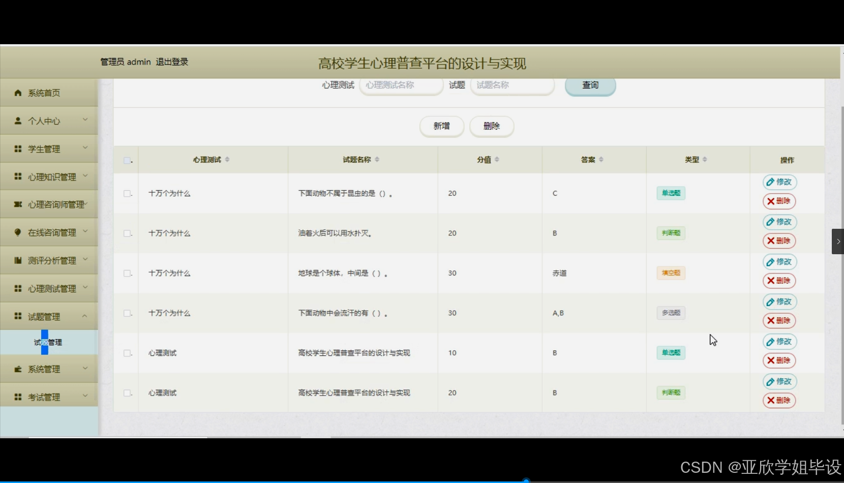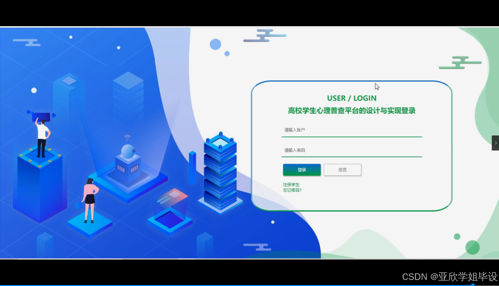 - 平台原型:完成高校学生心理普查平台的设计与开发,包括上述各个功能模块的实现,形成一个可运行的平台原型。