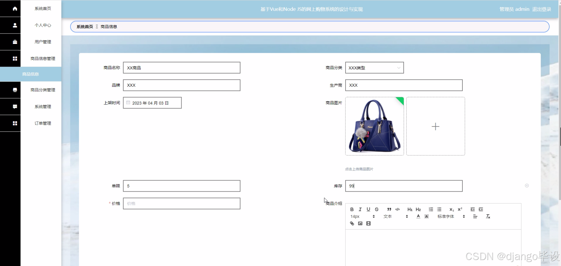 本选题研究将对django+vue技术在购物系统开发中的应用进行深入的剖析,为相关技术在电商领域的进一步发展提供理论支持,丰富软件工程领域关于特定技术组合构建网上购物系统的理论基础。