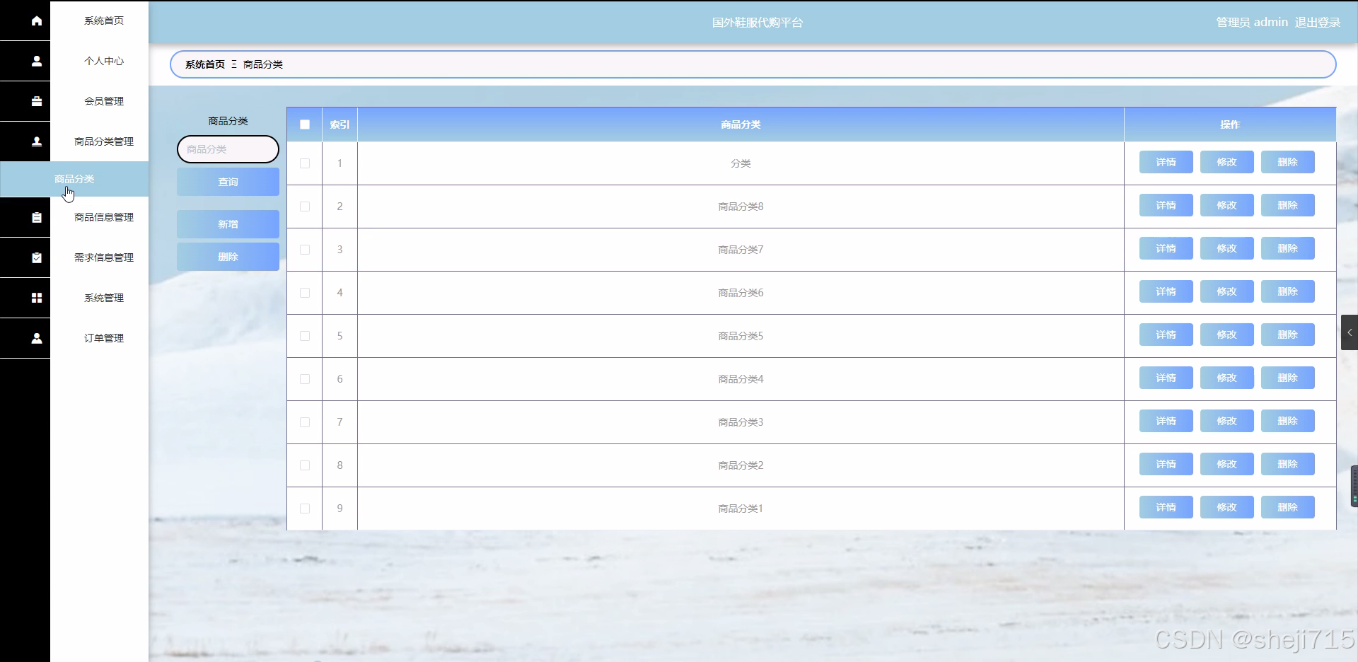 随着全球化的深入发展和互联网的广泛普及,国外鞋服品牌因其独特的设计、高品质的材料以及丰富的款式,吸引了大量国内消费者的关注与喜爱。然而,由于地域限制、语言障碍以及购买渠道的不便,许多消费者难以直接购买到心仪的国外鞋服产品。因此,国外鞋服代购平台应运而生,为消费者搭建起了一座连接国内外市场的桥梁。这些平台通过专业的代购服务,帮助消费者轻松购买到国外鞋服商品,满足了消费者对品质和时尚的追求。然而,随着代购市场的不断扩大,如何高效管理代购流程、优化用户体验、确保商品质量等问题逐渐凸显,亟需通过研发更加智能化的代购平台来解决。
