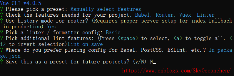 / 选择自定义方式创建项目,选取Router, Vuex插件