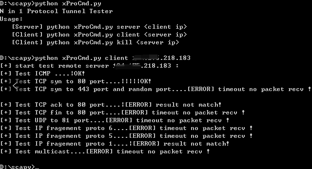 原理很简单,就是从A主机发送各种类型的数据包附带一个字符串到B主机,B如果收到就把字符串运算一下发回给A,A能收到那就说明该协议可用(想一想,为什么要运算一下而不是原字符串返回)。