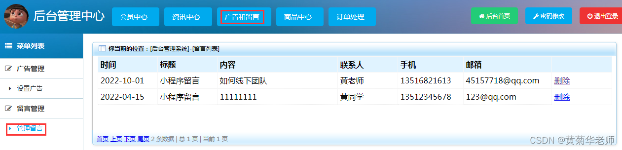 管理资讯:查看已录入资讯列表,支持删除和修改