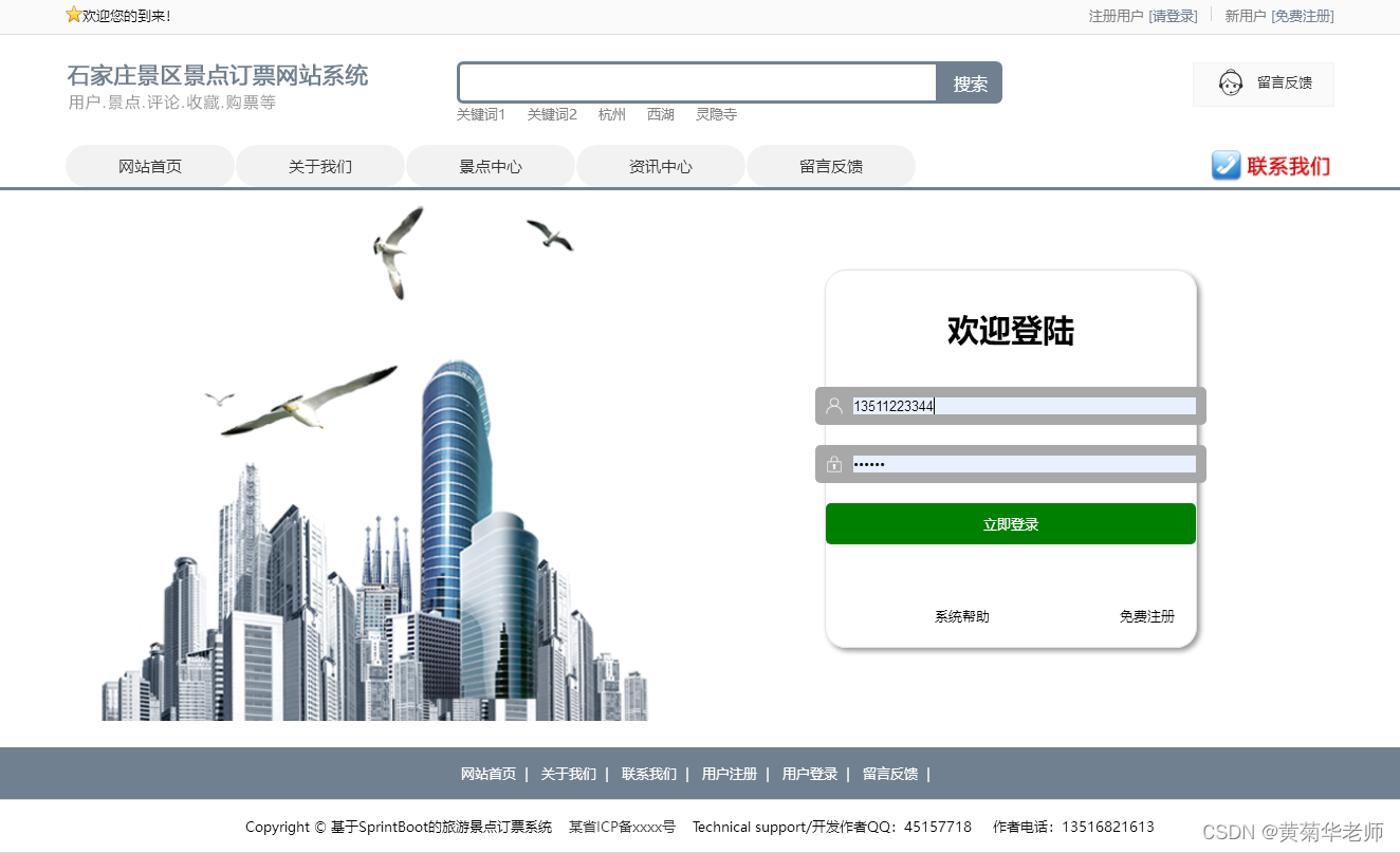 景点订票:在景点详情页面,点击“立即订购景点门票”,确认景点的信息和门票费用;填写预约的姓名、电话、备注,提交门票订单。