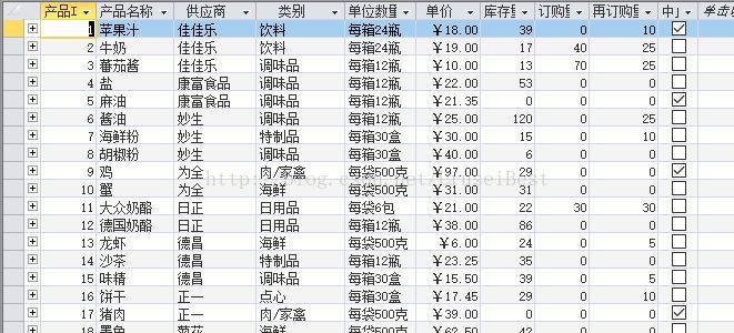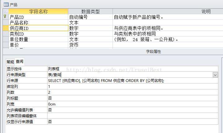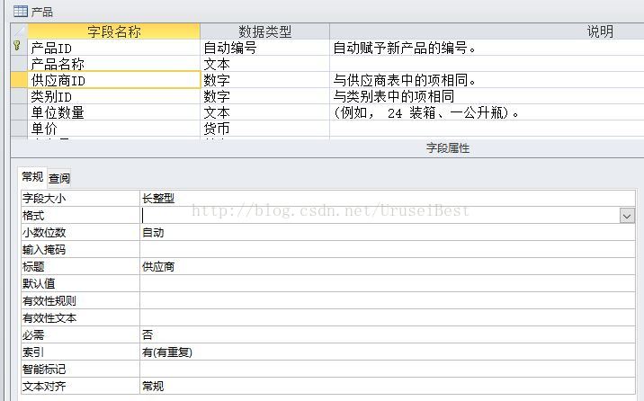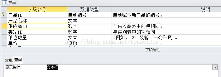 在设计界面可以看出,供应商ID、类别ID实际是数字类型的。