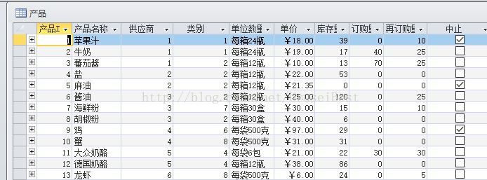 这个时候可以看出,和之前显示的数据不一样了,直接显示了数字的供应商ID和类别ID,也就是这个表中实际保存的值。
