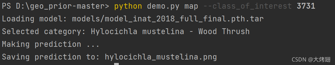 python demo.py location --longitude -118.1445155 --latitude 34.1477849 --time_of_year 0.5输入的坐标需要用数字表示经纬度,即Longitude:[-180,180],Ltitude:[-90,90],Time of year[0,1]