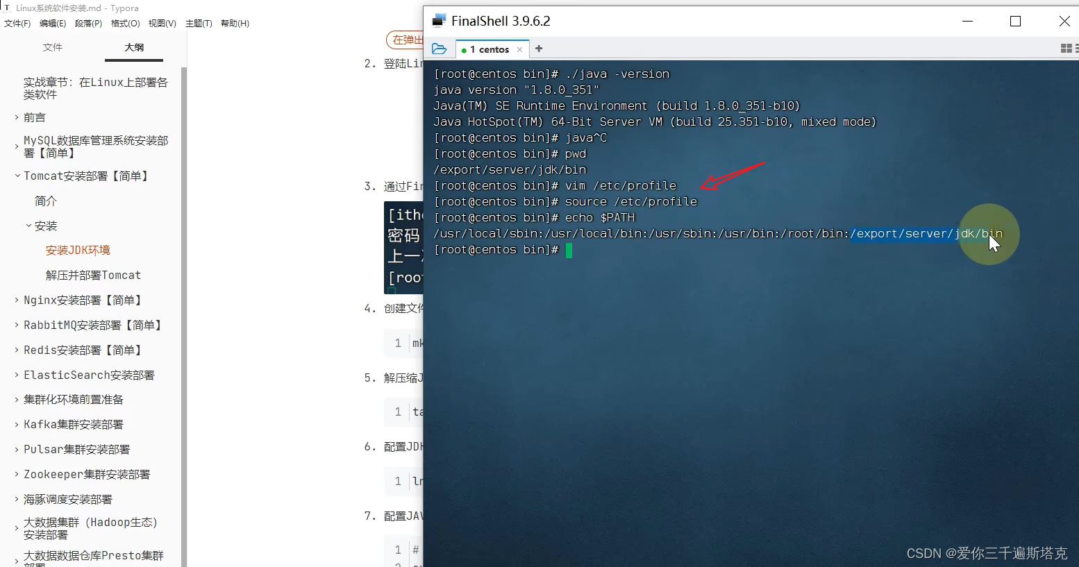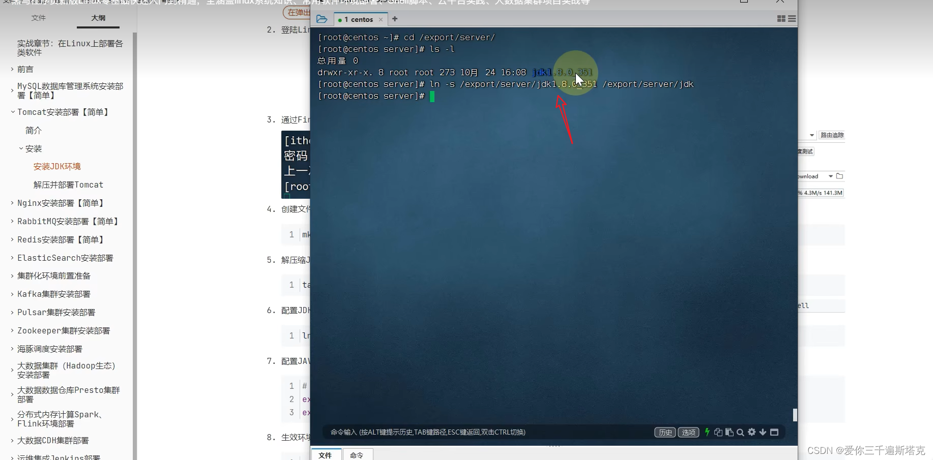 ln -s /export/server/jdk /export/server/jdk软链接到指定的文件里