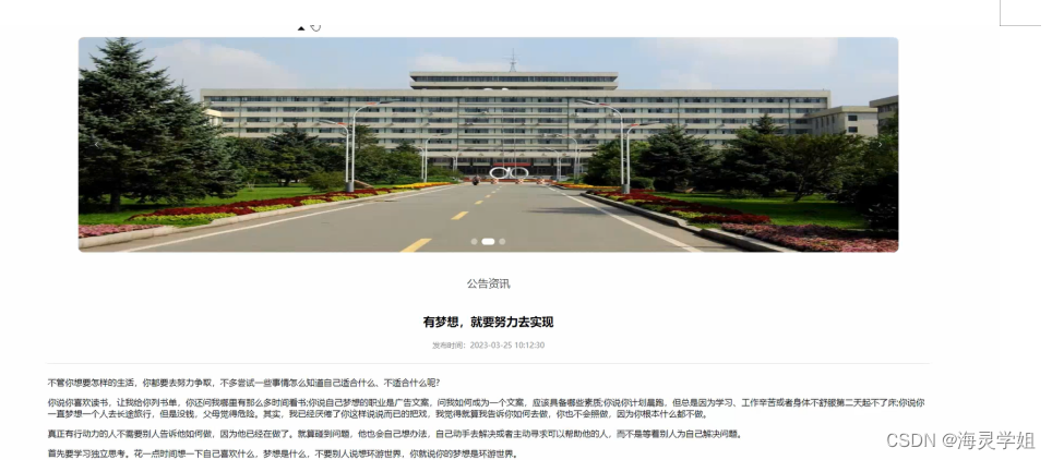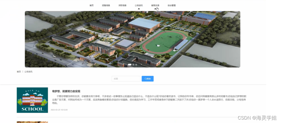 用户点击公告资讯,进入公告资讯界面,用户可输入标题进行查询,并可进行点击进去查看详细公告内容等操作,界面如图5-7所示: