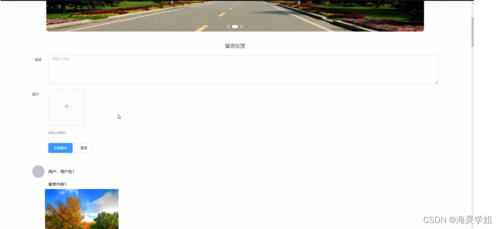用户点击留言反馈,进入留言反馈界面,用户可在留言框内提交留言并添加图片、查看其他用户的留言内容等操作,界面如图5-8所示: