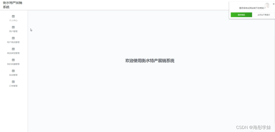 模块包括主页、个人中心、用户管理、特产商品管理、商品类型管理、我的收藏管理、系统管理、订单管理等进行相应的操作。