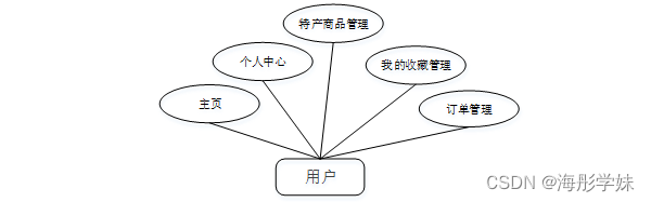 用户注册登录后可进行主页、个人中心、特产商品管理、我的收藏管理、订单管理,用户用例如图3-2所示。