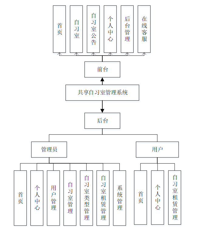 根据共享自习室管理系统设计的功能需求,进行系统设计。