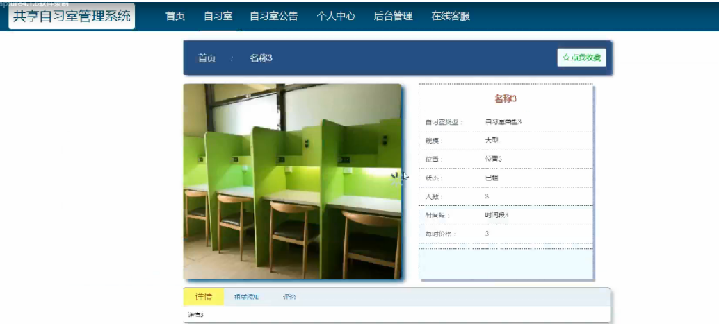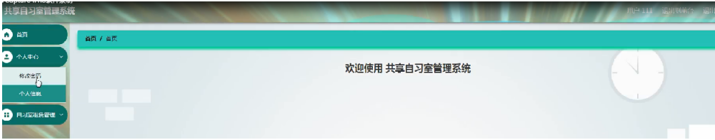 用户进入系统可以实现首页,自习室,自习室公告,个人中心,后台管理,在线客服等功能进行操作;