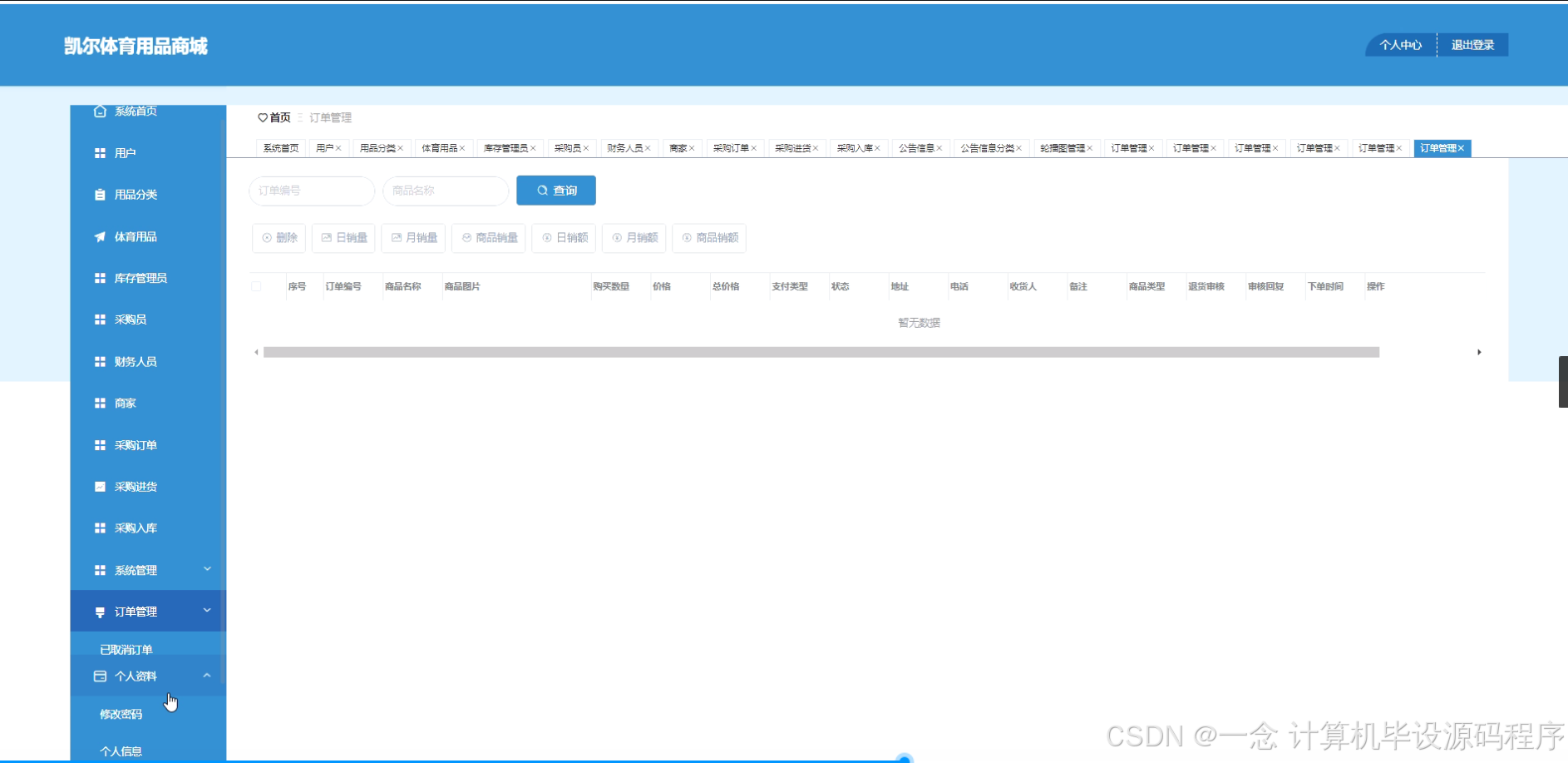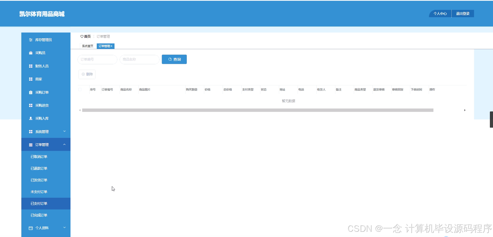 随着互联网技术的飞速发展,电子商务在各个行业的应用日益广泛。在体育用品领域,国内外关于体育用品商城的研究主要集中在传统的商业模式以及大型综合电商平台中的体育用品销售板块。对于专门针对某一特定品牌(如凯尔体育用品)的商城研究较少。现有研究多以宏观的体育用品销售市场分析为主,较少深入到特定品牌商城的功能架构、用户体验、供应链管理等微观层面。本选题将以凯尔体育用品商城为研究情景,重点分析和研究其在基于Python开发过程中的各种问题,如系统功能的实现(包括用户、用品分类、体育用品、库存管理员、采购员、财务人员、商家、采购订单、采购进货、采购入库、物流管理员等功能),探寻如何构建一个高效、便捷、功能完善的体育用品商城的问题原因及机制等,提出对策建议,为后续更加深入的研究提供基础。这一研究有助于深入了解特定品牌体育用品商城的运营模式和发展需求,是有价值的研究方向。