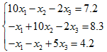 运行程序,根据提示输入 (3) (10 -1 -2 -1 10 -2 -1 -2 5) (7.2 8.3 4.2)
