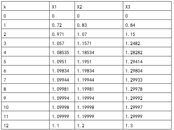 cout<<"由雅可比迭代公式求的方程组的解为:"<<endl;
