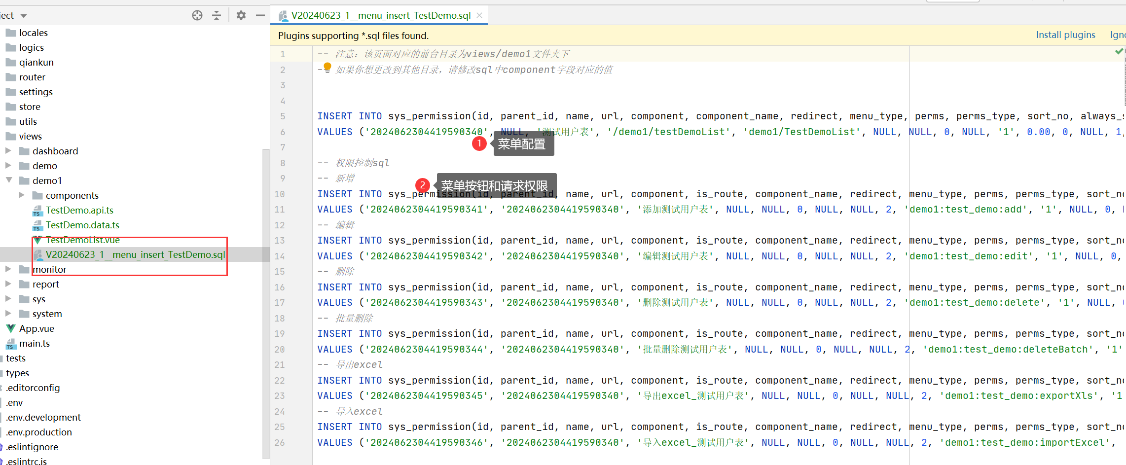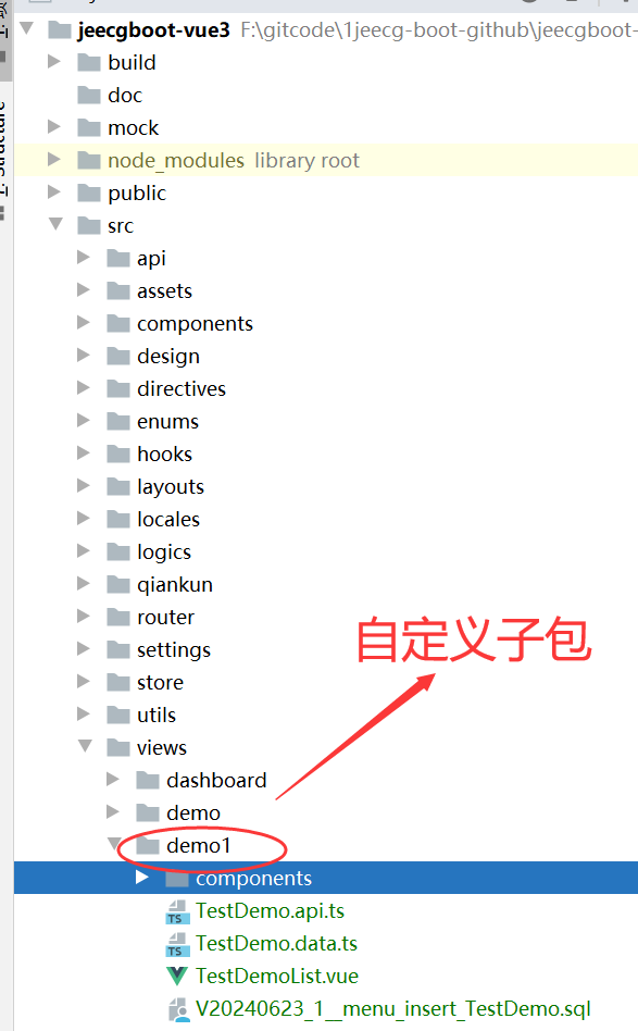 将生成的前端代码放在前端项目的view文件夹下面自定义的子包名